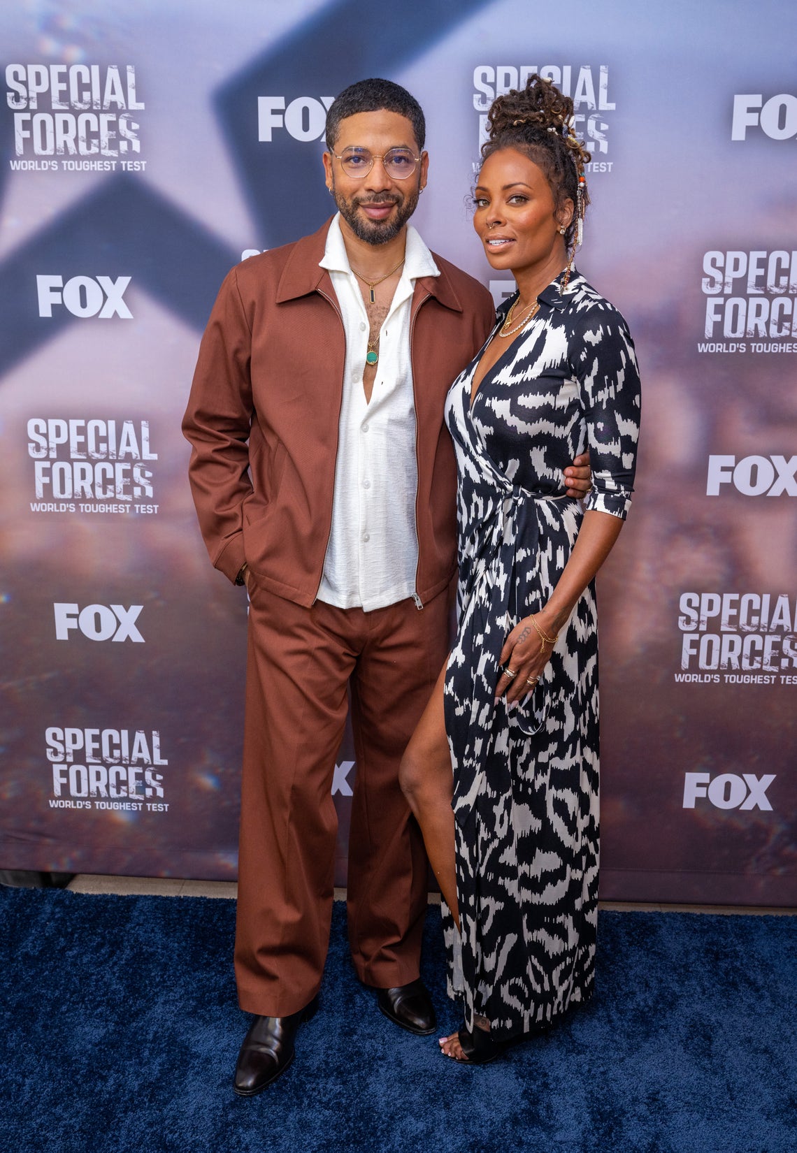 Jussie Smollett and mannequin Eva Marcille attend the Fox’s “Particular Forces” Crimson Carpet on the Fox Studio Lot on September 9, 2025 in Los Angeles, California
