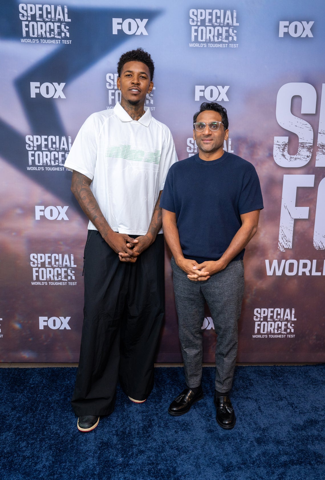 NBA participant Nick Younger and actor Ravi Patel attend the Fox’s “Particular Forces” Crimson Carpet on the Fox Studio Lot on September 9, 2025 in Los Angeles, California
